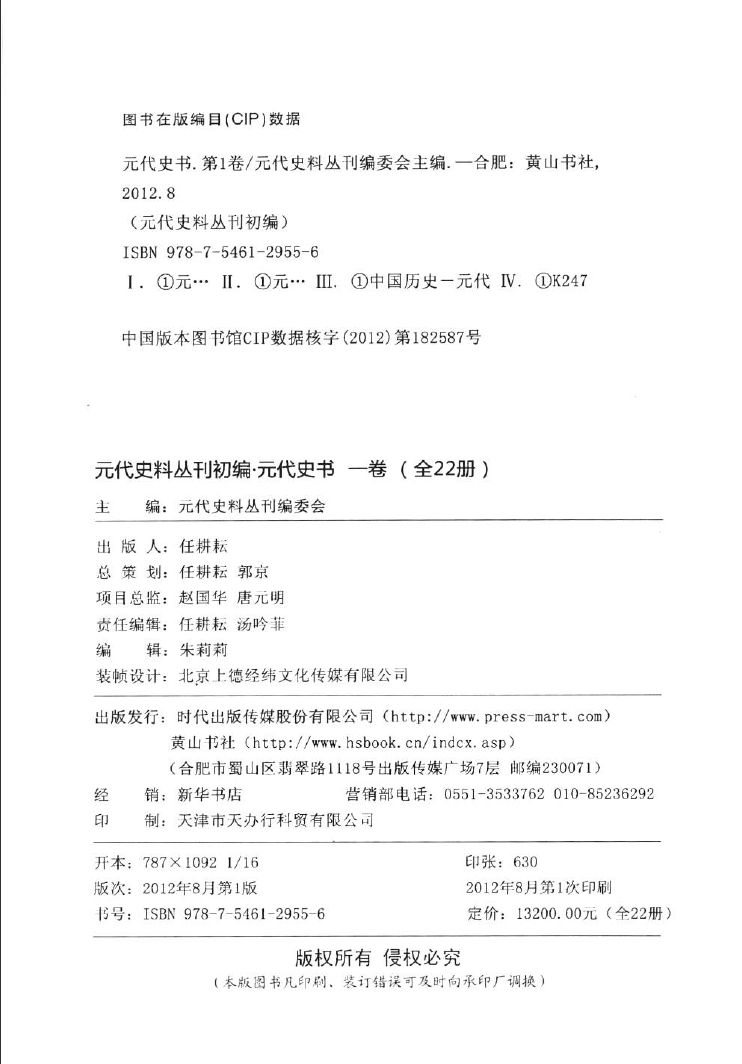 │012元代史料丛刊初编 元代史书 1卷 第12册 元代史料丛刊编委会主编 合肥:黄山书社 2012.08.pdf 143.89 MB