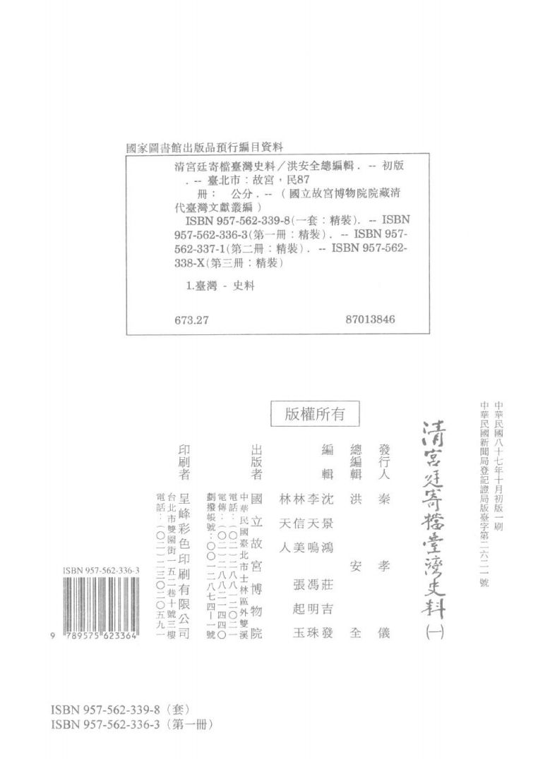 清宫廷寄档台湾史料 1 洪安全总编辑 民国87.10.pdf 158.71 MB 清宫廷寄档台湾史料 2 洪安全总编辑 民国87.10.pdf 164.71 MB 清宫廷寄档台湾史料 3 洪安全总编辑 民国87.10.pdf 137.13 MB