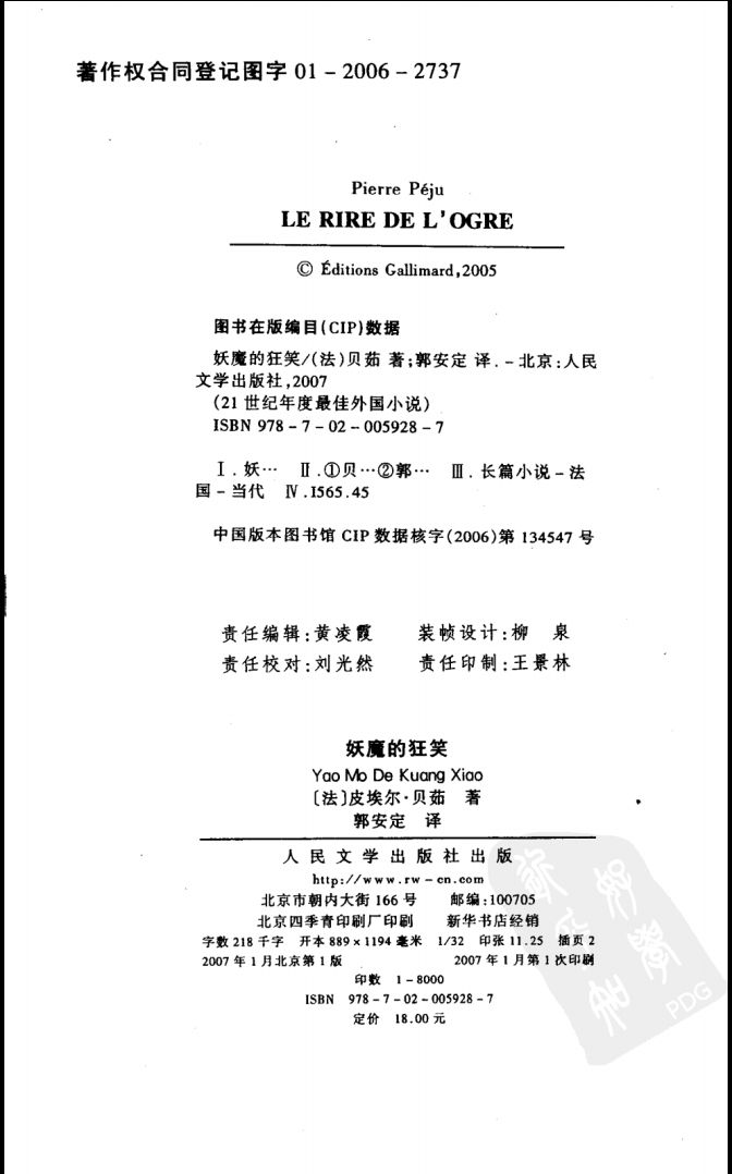 │[21世纪年度最佳外国小说]妖魔的狂笑[法]皮埃尔·贝茹.郭安定译.人民文学出版社(2007).pdf 12.25 MB