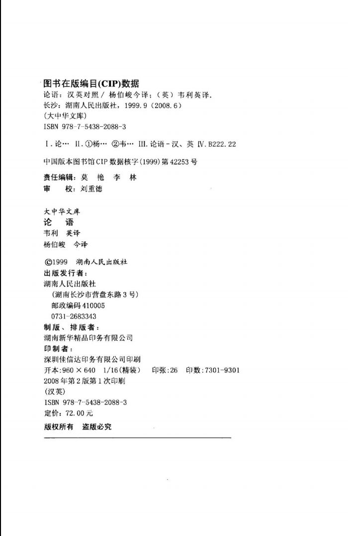 009大中华文库 论语:汉英对照 杨伯峻今译 长沙:湖南人民出版社 2008.pdf 103.31 MB