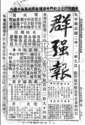 民国之初,办报之风大盛,但很多报刊旋生旋灭。《群强报》是个异数,1912年创刊,报馆设在正阳门外樱桃斜街中间路北,直至1936年4月3日终刊,前后长达24年之久。