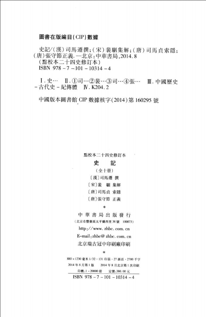 史记 点校本二十四史修订本 第01册 (汉)司马迁撰;(宋)裴骃集解;(唐)司马贞索引;(唐)张守节正义 北京:中华书局 2014.pdf 75.78 MB