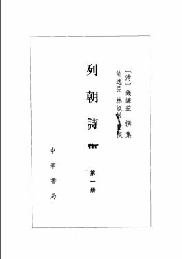 《列朝诗集》编定于明清之际,选录明代278年间的诗作,共81卷,入选诗人1600余家。全书总分为甲、乙、丙、丁4集,另外,帝王的诗置于卷首为“干集”,僧道、妇女、宗室和域外诗列于卷末为“闰集”,元末明初的诗则编在干集后为“甲集前编”。