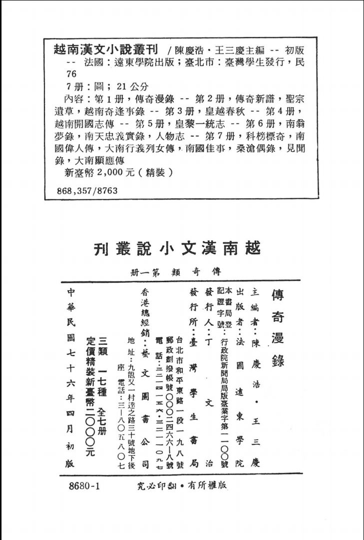 003越南汉文小说丛刊1++传奇类++第1册++传奇漫.pdf 150.14 MB