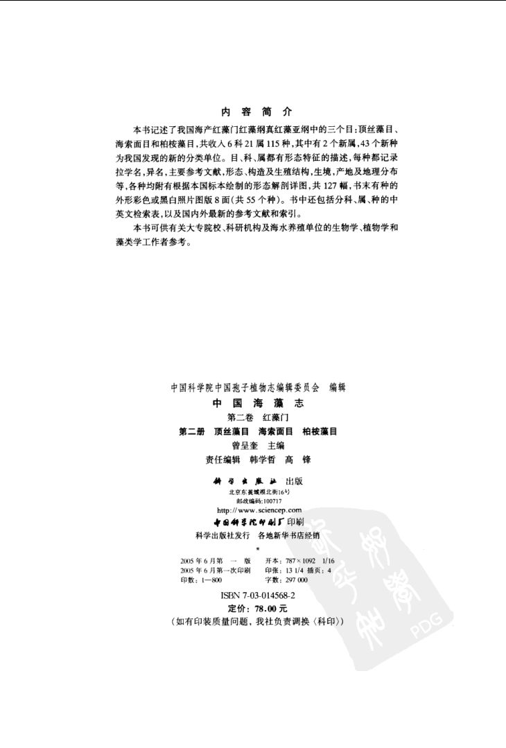 中国海藻志 第2卷 红藻门 第5册 伊谷藻目 杉藻目 红皮藻目.pdf 14.32 MB