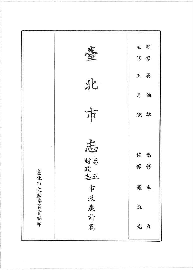 024台北市志 卷5 财政志 财政岁计篇.pdf 280.27 MB