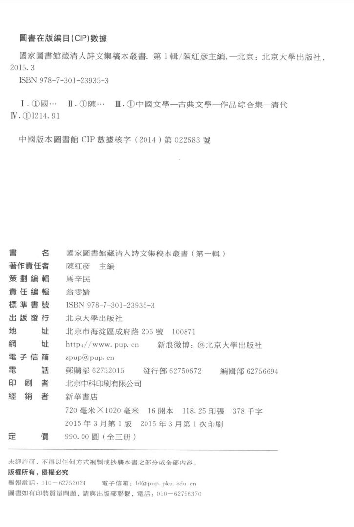 国家图书馆藏清人诗文集稿本丛书 第1辑(共3册)