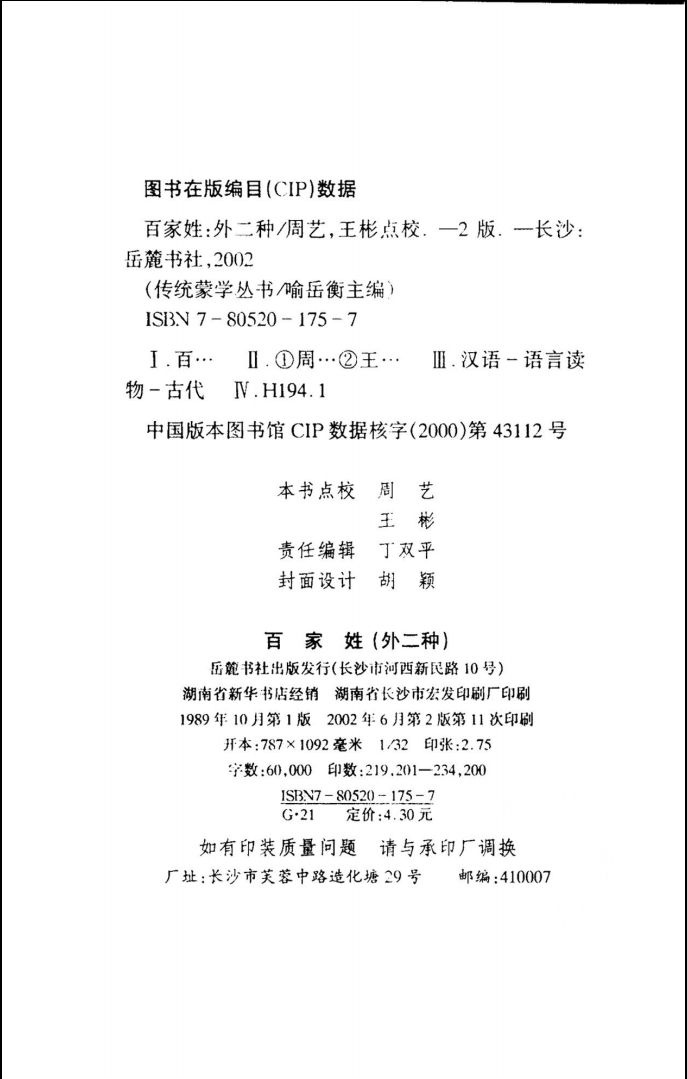 001百家姓:外二种 周艺,王彬点校 长沙市:岳麓书社 1997_10843324.pdf 12.97 MB