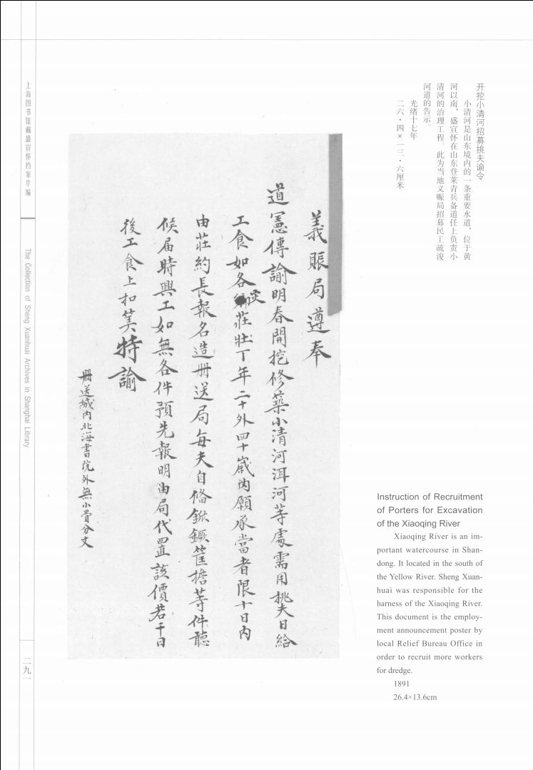上海图书馆收藏的盛宣怀档案约17.5万件,是盛宣怀家族自1850至1936年间的记录,包括日记、文稿、信札、账册、电文等等,内容涉及政治、经济、社会、军事、外交、金融、贸易、教育各方面。中国近代史上重大历史事件如洋务运动、义和团运动、甲午中日战争、辛亥革命等等,都一一涉及;近代史上所有名人、要人,盛宣怀与之都有往来,并留下了大量书信、文札等史料。“盛档”是一座亟待挖掘的史料宝藏。上海图书馆从大量的“盛档”中精选300余件、700余幅图片,编纂为《上海图书馆藏盛宣怀档案萃编》一书,率先与读者见面。《上海图书馆藏盛宣怀档案萃编》分为商战求富、激荡楸枰、赈灾济贫、欧风美雨、风俗习惯等五个部分,每部分再细分子目,挑选最具有代表性的史料,精心拍摄,精心编排,再配以简洁明了的文字说明。本书能让读者了解盛宣怀一生的主要经历和事迹,并据此管窥晚清至民国初年中国历史的风云激荡,对于研究中国近代史,尤其是洋务运动史、中国近代资本主义发展史、中国近代实业思想史以及近代上海史等将大有裨益。