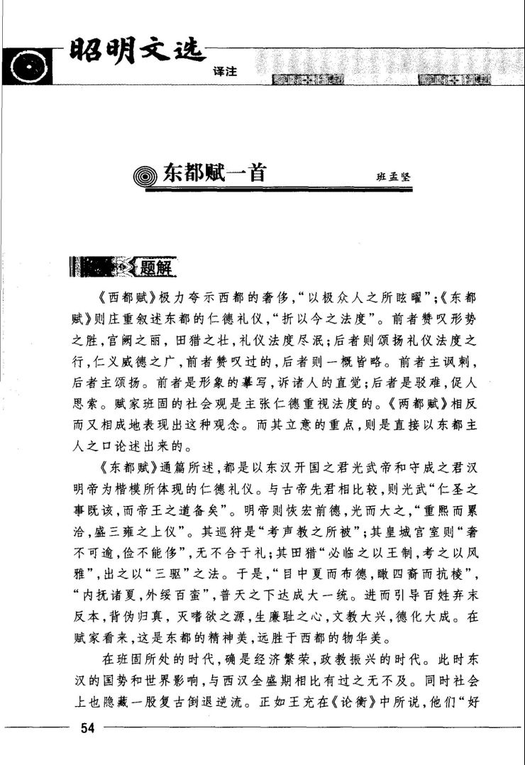 《昭明文选译注》是我国第一部《文选》今注今译本,其难度之大,在古文今注今译中不多见。《昭明文选》是我国现存的最早一部诗文总集,由南朝梁武帝的长子萧统组织文人共同编选。萧统死后谥“昭明”,所以他主编的这部文选称作《昭明文选》。