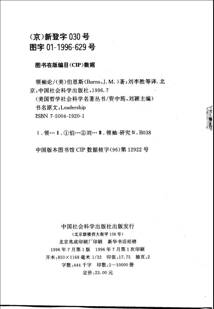 01美国哲学社会科学名著丛书 领袖论 (美)詹姆斯·麦格雷戈·伯恩斯(James MacGregor Burns)著;刘李胜等译 中国社会科学出版社, 1996_10232700.pdf 262.54 MB