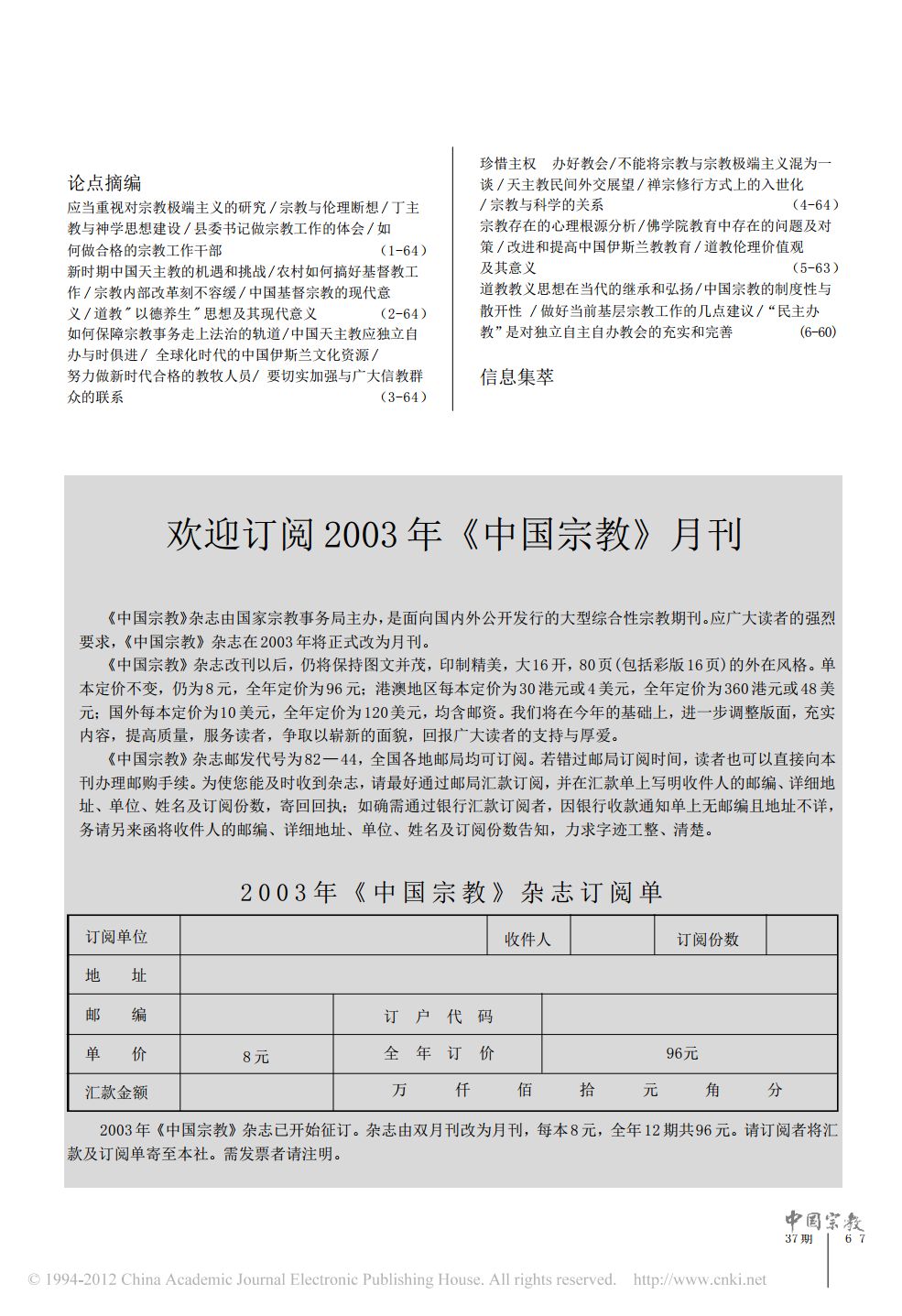 欢迎订阅2012年_中国宗教_杂志.pdf 464.59 KB