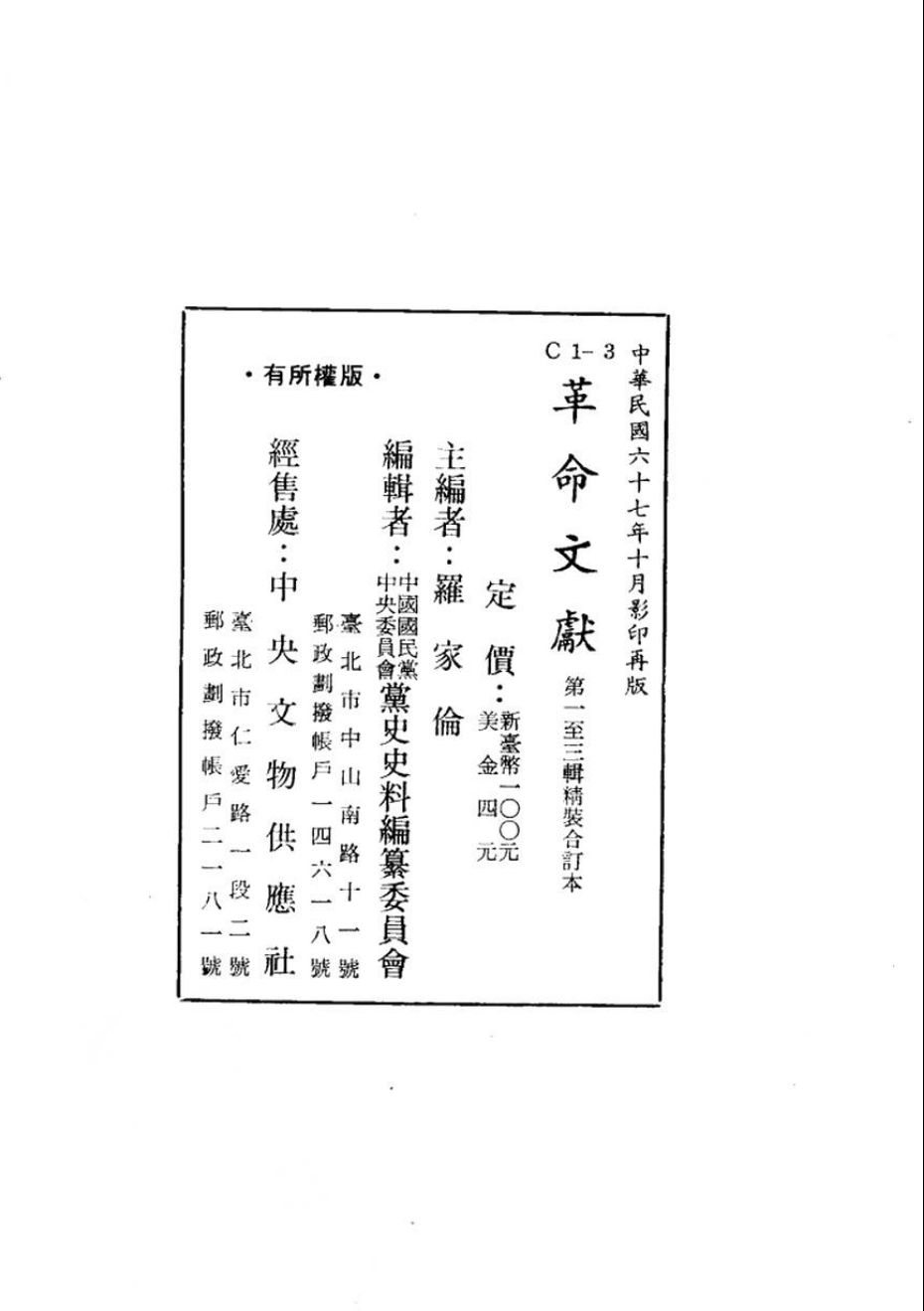 51 重建护法政府史料 黄季陆主编 1970 FB.175:03.32