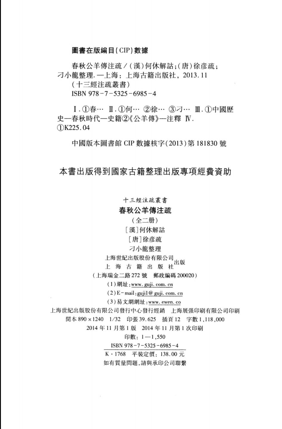 春秋公羊传注疏(共2册)