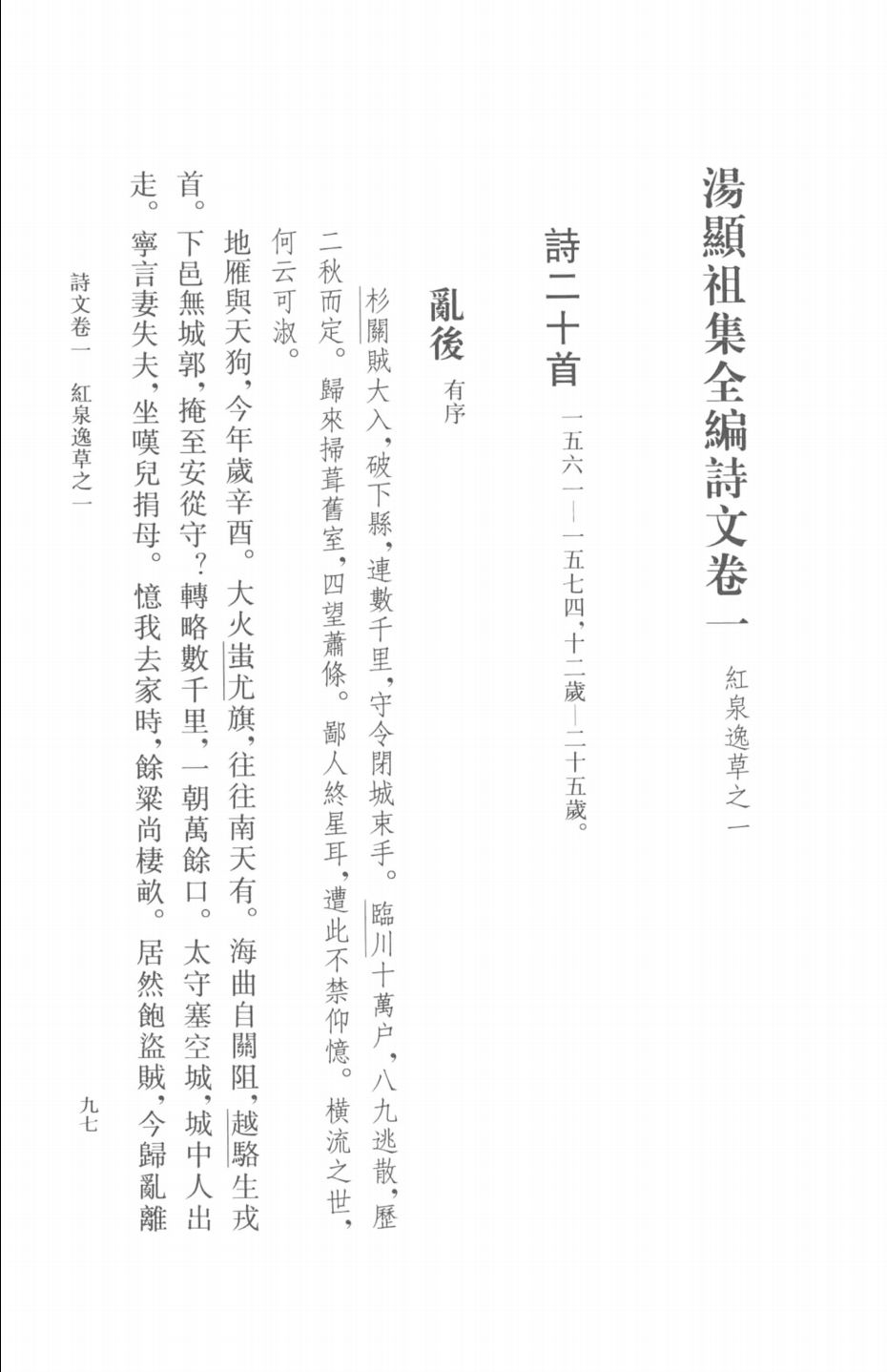 汤显祖集全编诗文卷目录