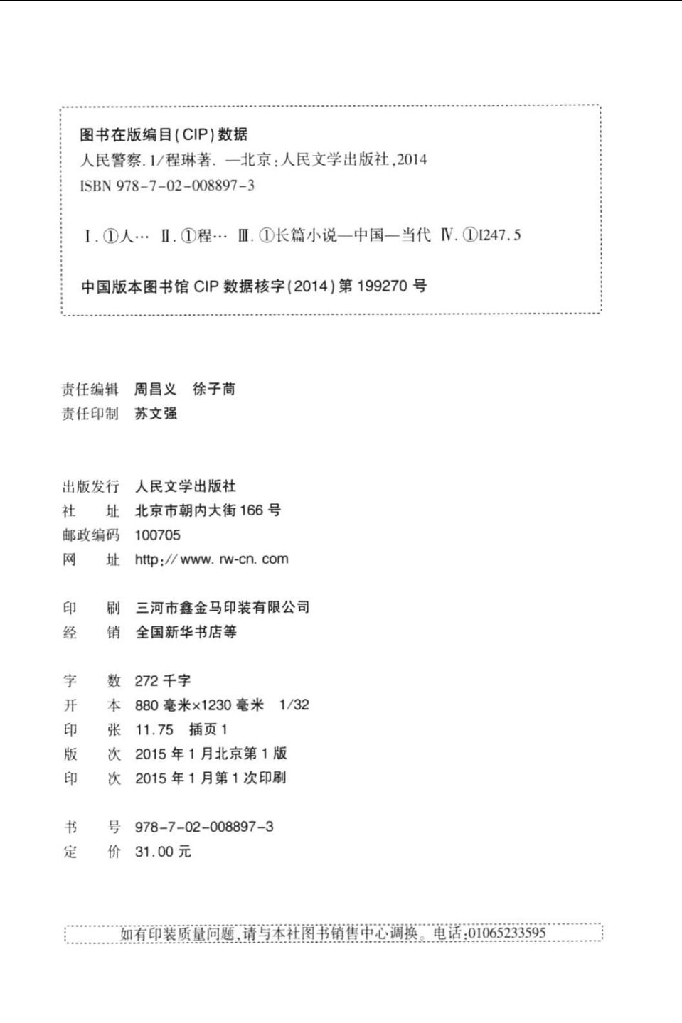 出版社:人民文学出版社 2015