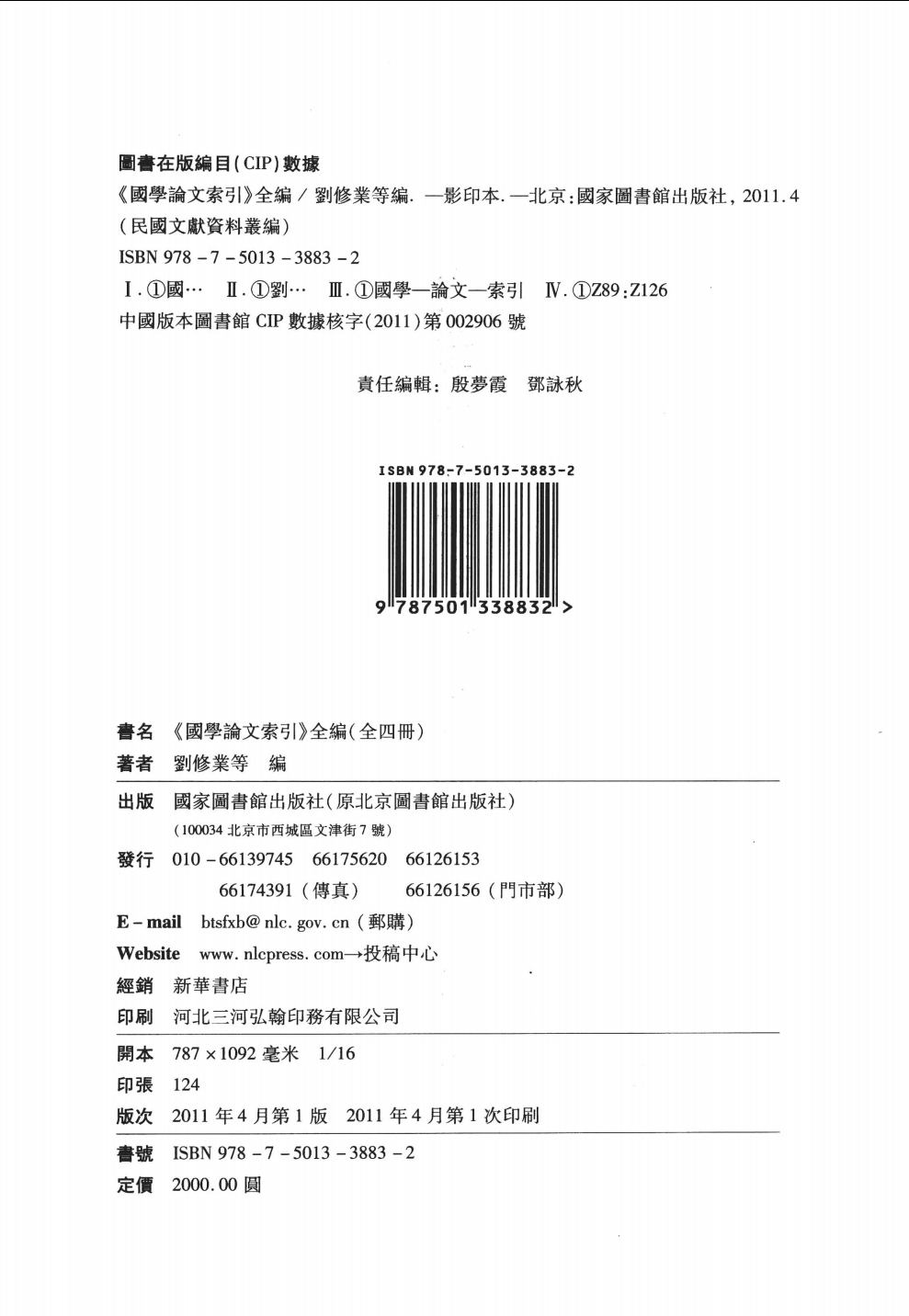 第一冊 叢書總序 論我國索引源流與近現代報刊資料的利用途徑(代序》 《國學論文索引》全編出版說明 國學論文索引 國學論文索引續编