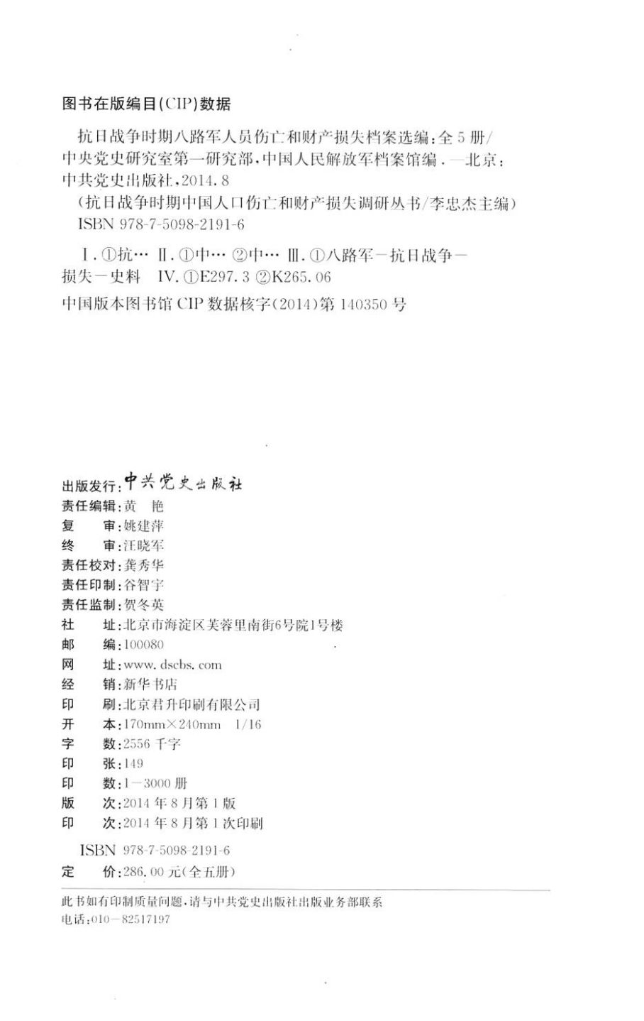 战争时期八路军人员伤亡和财产损失档案选编(共5册)