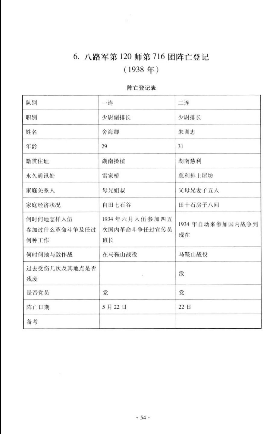 6.八路军第120师第716团阵亡登记
