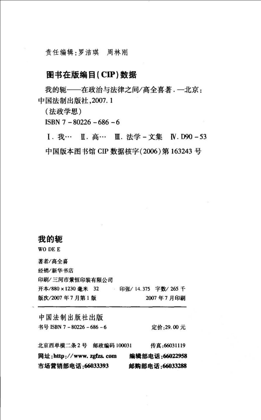 002高全喜著. 我的轭 在政治与法律之间. 中国法制出版社, 2007.01. _11873486.pdf 168.20 MB