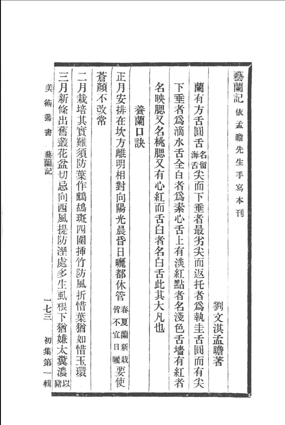《美术丛书》是上海神州国光社从1911年春开始刊行的一大套关于中国美术的丛书,编者是神州国光社的创办人邓实,后来又有黄宾虹加入。这是集中国古代重要美术著作于一身的大型丛书,依传统四部分类法的“书画、琴谱、篆刻、杂技”,将所收书籍分为“书画类、雕刻摹印类、磁铜玉石类、文艺 类、杂记类”等五类,共收书270余种,约300万字。其中书画类最多,占全书七成,其中不甚经见之书,更为言书画者所不可不备。《美术丛书》的出版始事于1911年春,至1918年为止,刊出了初版全三集本。1928年,黄宾虹加入编者行列,刊出再版全三集本。1936年,加入第四集之后,刊出三版全四集本。1947年,全四集本增订再版,是为四版全四集本。1964年严一萍加入编者行列,由台北艺文印书馆增加为五集,1976年又加入第六集,刊行最为完备的全六集本。1986年,江苏古籍出版社影印出版了三版全四集,1997年又影印出版了四版全四集本。本次以1947年全四集增订本为底本,按原书实际大小影印,以原书“某集某辑”的编次分为40册.