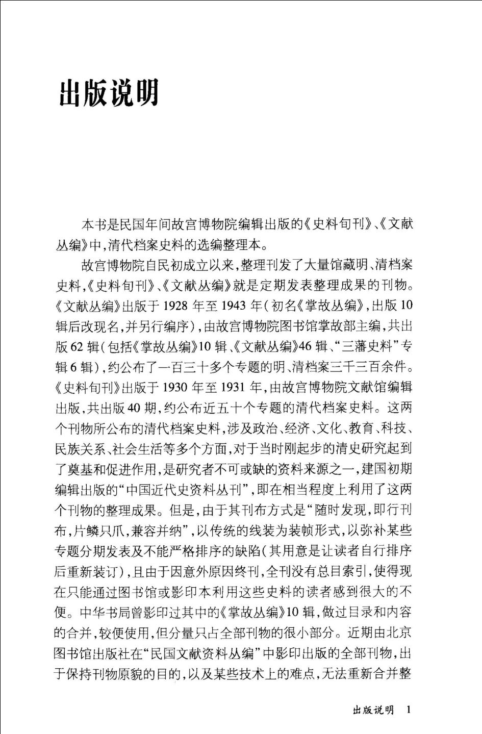 《清代档案史料选编(套装共4册)》是民国年间故宫博物院编辑出版的《史料旬刊》、《文献丛编》中,清代档案史料的选编整理本。故宫博物院自民初成立以来,整理刊发了大量馆藏明、清档案史料,《史料旬刊》、《文献丛编》就是定期发表整理成果的刊物。《文献丛编》出版于1928年至1943年(初名《掌故丛编》,出版10辑后改现名,并另行编序),由故宫博物院图书馆掌故部主编,共出版62辑(包括《掌故丛编》10辑、《文献丛编》46辑、“三藩史料”专辑6辑),约公布了一百三十多个专题的明、清档案三干三百余件。《史料旬刊》出版于1930年至1931年,由故宫博物院文献馆编辑出版,共出版40期,约公布近五十个专题的清代档案史料。这两个刊物所公布的清代档案史料,涉及政治、经济、文化、教育、科技、民族关系、社会生活等多个方面,对于当时刚起步的清史研究起到了奠基和促进作用,是研究者不可或缺的资料来源之一,建国初期编辑出版的“中国近代史资料丛刊”,即在相当程度上利用了这两个刊物的整理成果。但是,由于其刊布方式是“随时发现,即行刊布,片鳞只爪,兼容并纳”,以传统的线装为装帧形式,以弥补某些专题分期发表及不能严格排序的缺陷(其用意是让读者自行排序后重新装订),且由于因意外原因终刊,全刊没有总目索引,使得现在只能通过图书馆或影印本利用这些史料的读者感到很大的不便。中华书局曾影印过其中的《掌故丛编》10辑,做过目录和内容的合并,较便使用,但分量只占全部刊物的很小部分。