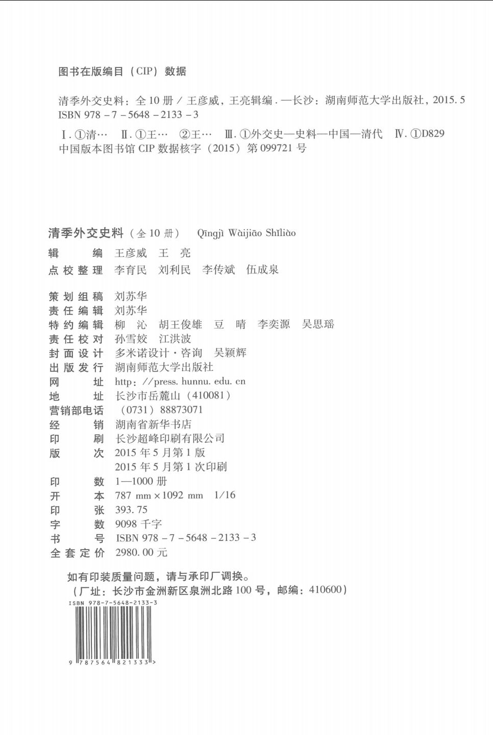 清季外交史料(共10册)