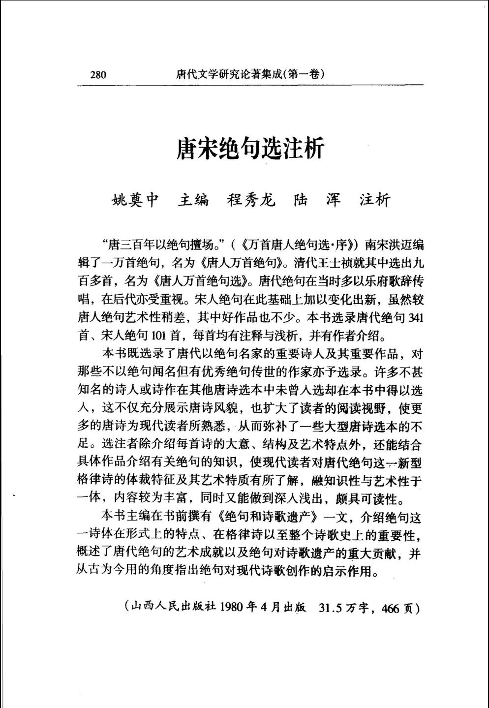第1卷 1949-1980 唐代文学研究著作提要