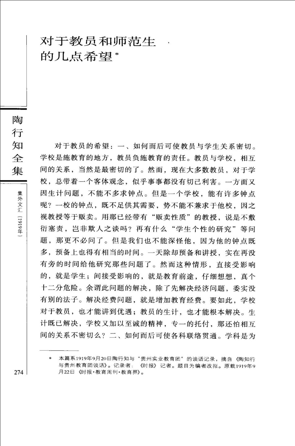 陶行知是我国伟大的人民教育家、伟大的共产主义战士。他为中国教育改造、普及人民教育、争取民族解放和建立人民民主的新中国奋斗了一生,留下了大量的著作。他的著作,散见于1913年到1946年的国内外报刊。生前曾以各种形式出版各种专集,流传甚广,影响深远。