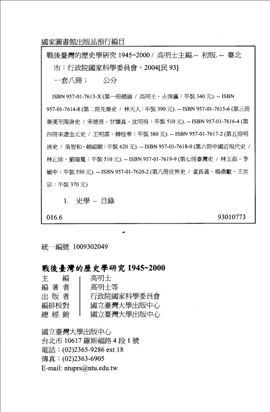 001战后台湾的历史学研究1945~2000 第一册 总论_古伟瀛,高明士编著_行政院国家科学委员会_2004_12405323.pdf 92.00 MB