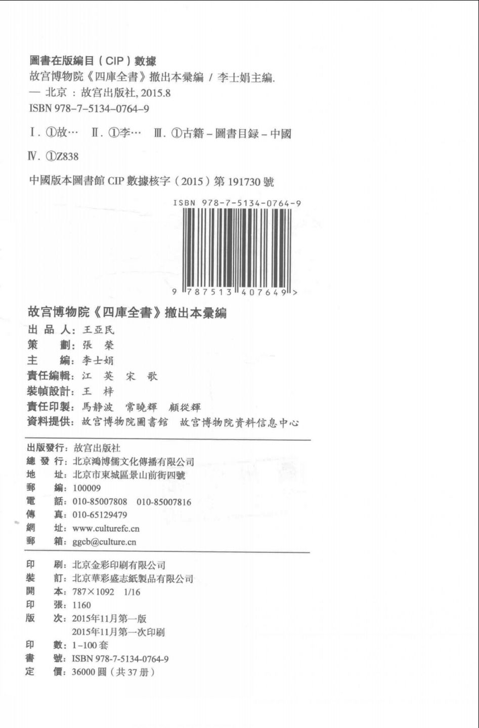 故宫博物院藏四库全书撤出本汇编(全37册)