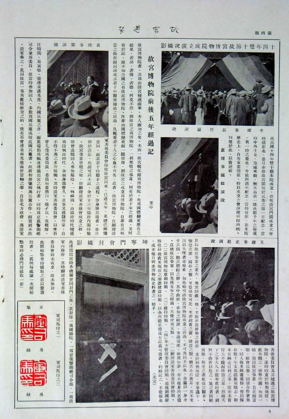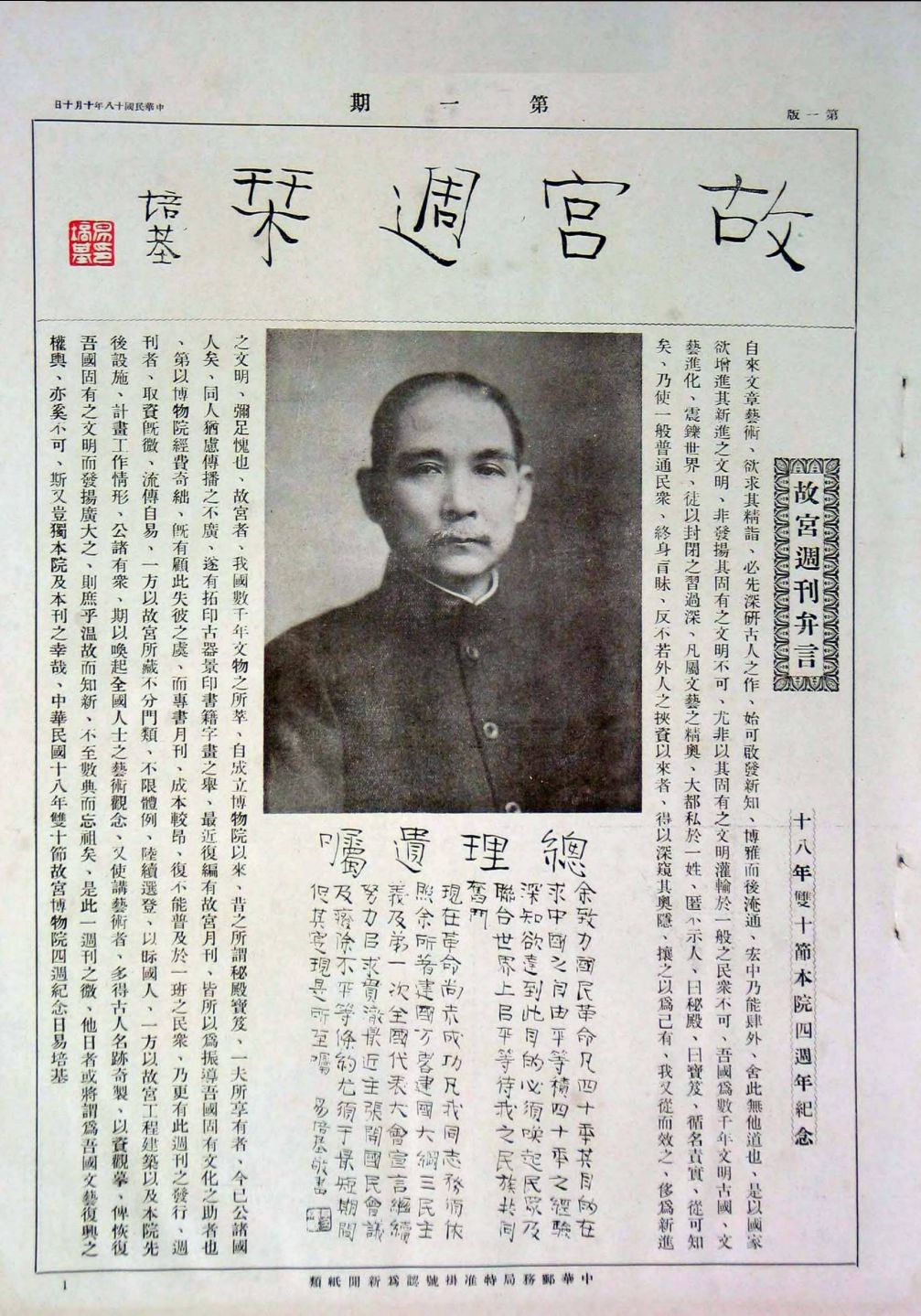 《故宫周刊》是国立北平故宫博物院成立后创办的第一份艺术类刊物,于1929年月开始发行第1期,至1936年4月出到510期以后,改为《故宫旬刊》。该刊为8开大册,每期4页,米色铜版纸铜版精印。