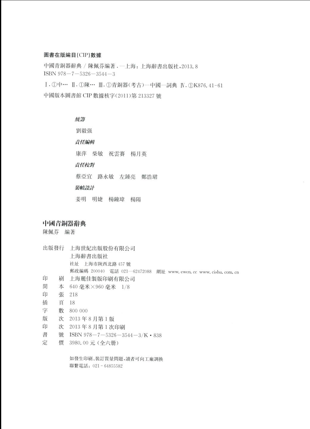 本书分论述、分类、器名、纹饰、铭文、重要青铜器、铸造技术、遗址窖藏墓葬、金石学家、青铜器书目十大类,收词2800余条,图片近3000幅,全面展现中国青铜器的全貌和研究成果。是目前收录最为完备的一部大型青铜器的工具书,填补了中国青铜器辞典领域的空白。书前有分类词目表,书后附笔画索引,是海内外图书馆、博物馆、艺术馆、大专院校及青铜器研究者、爱好者和业界人士、艺术设计者、书法爱好者不可错过的重要工具书。