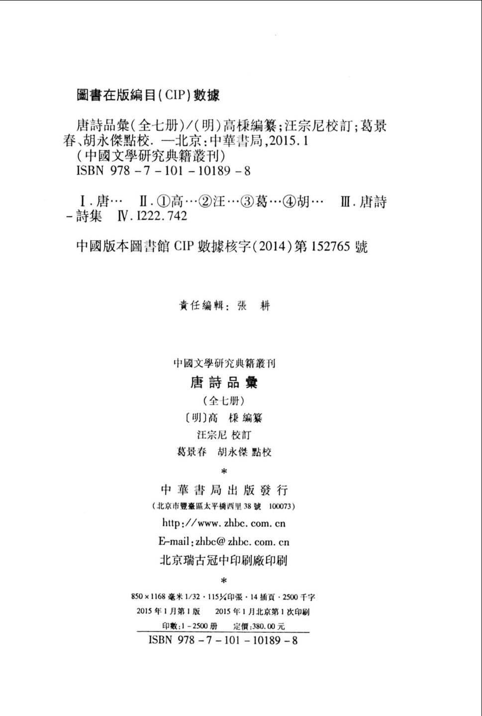 作者: [明]高棅 编纂 / [明]汪宗尼 校订 / 葛景春 胡永杰 点校