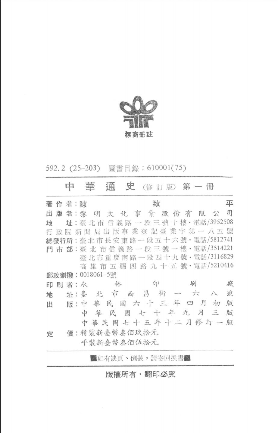 出版社:黎明文化事业股份有限公司 , 民国75.12