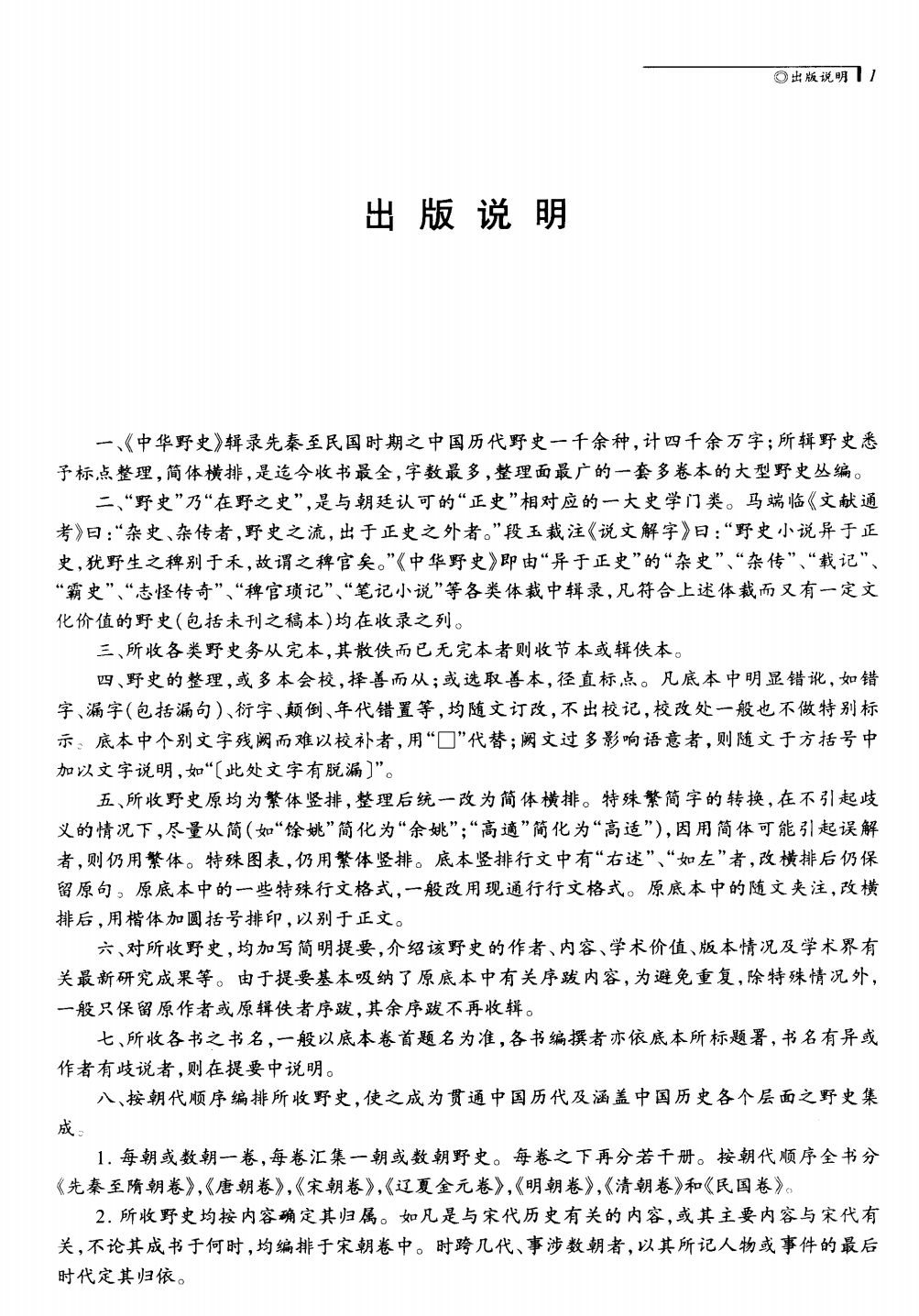 国内有数套丛书,均以「中华野史」为名,实际都是历史小说。这一套书名为「野史」,实际上是历朝笔记、逸闻的选集,合约四千万字。选目极精,编委会亦是名家云集,简体横排,点校亦很不错。作为日常阅读、备查都很合适。